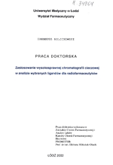 Tytuł: Zastosowanie wysokosprawnej chromatografii cieczowej w analizie wybranych ligandów dla radiofarmaceutyków