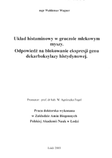 Title: Układ histaminowy w gruczole mlekowym myszy : odpowiedź na blokowanie ekspresji genu dekarboksylazy histydynowej