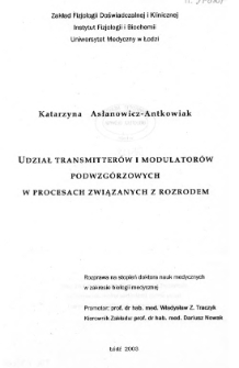 | Asłanowicz-Antkowiak, Katarzyna, 2003, Udział transmitterów i modulatorów podwzgórzowych w procesach związanych z rozrodem | May 18, 2021 |