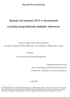 | Wyczechowska, Dorota, 2003, Badanie roli metylacji DNA w mechanizmie cytotoksycznego działania analogów adenozyny | May 21, 2021 |
