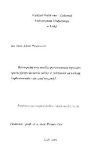 Tytuł: Retrospektywna analiza porównawcza wyników operacyjnego leczenia zaćmy w zależności od metody implantowania sztucznej soczewki