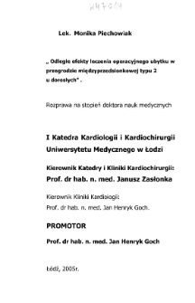 Tytuł: "Odległe efekty leczenia operacyjnego ubytku w przegrodzie międzyprzedsionkowej typu 2 u dorosłych"