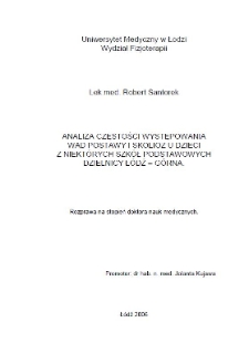 Tytuł: Analiza częstości występowania wad postawy i skolioz u dzieci z niektórych szkół podstawowych dzielnicy Łódź-Górna