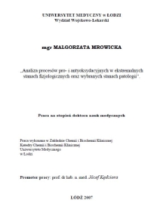 Title: Analiza procesów pro- i antyoksydacyjnych w ekstremalnych stanach fizjologicznych oraz wybranych stanach patologii