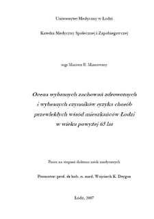 Tytuł: Ocena wybranych zachowań zdrowotnych i wybranych czynników ryzyka chorób przewlekłych wśród mieszkańców Łodzi w wieku powyżej 65 lat