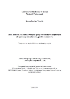 Tytuł: Rola izoform rekombinowanych epitopów brzozy w diagnostyce alergicznego nieżytu nosa, gardła i spojówek