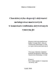 Title: Charakterystyka ekspresji i aktywności metaloproteaz macierzowych w komórkach śródbłonka aktywowanych tymozyną beta 4