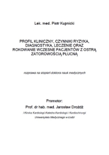 Title: Profil kliniczny, czynniki ryzyka, diagnostyka, leczenie oraz rokowanie wczesne pacjentów z ostrą zatorowością płucną