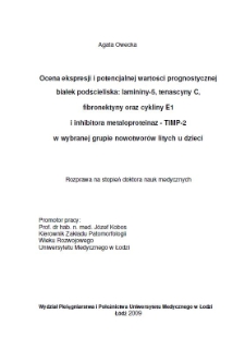 Tytuł: Ocena ekspresji i potencjalnej wartości prognostycznej białek podścieliska : lamininy-5, tenascyny C, fibronektyny oraz cykliny E1 i inhibitora metaloproteinaz - TIMP-2 w wybranej grupie nowotworów litych u dzieci