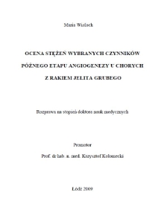 | Wieloch, Maria, 2009, Ocena stężeń wybranych czynników późnego etapu angiogenezy u chorych z rakiem jelita grubego | Oct 13, 2021 |