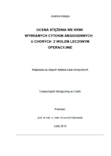 | Kalupa, Joanna, 2010, Ocena stężenia we krwi wybranych cytokin angiogennych u chorych z wolem leczonym operacyjnie | 2021-10-14 |