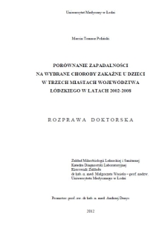 Title: Porównanie zapadalności na wybrane choroby zakaźne u dzieci w trzech miastach województwa łódzkiego w latach 2002-2008