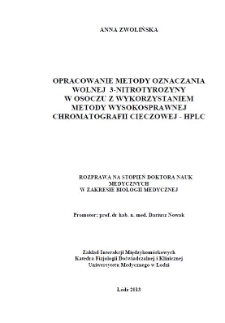 Title: Opracowanie metody oznaczania wolnej 3-nitrotyrozyny w osoczu z wykorzystaniem metody wysokosprawnej chromatografii cieczowej - HPLC