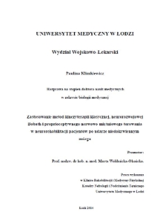 Tytuł: Zastosowanie metod kinezyterapii klasycznej, neurorozwojowej Bobath i proprioceptywnego nerwowo-mięśniowego torowania w neurorehabilitacji pacjentów po udarze niedokrwiennym mózgu
