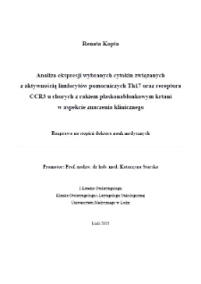 Tytuł: Analiza ekspresji wybranych cytokin związanych z aktywnością limfocytów pomocniczych Th17 oraz receptora CCR3 u chorych z rakiem płaskonabłonkowym krtani w aspekcie znaczenia klinicznego
