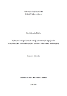 Tytuł: Wykrywanie niepożądanych reakcji pokarmowych u pacjentów z zespołem jelita nadwrażliwego jako podstawa doboru diety eliminacyjnej