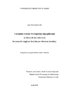 Title: Czynniki ryzyka wystąpienia hipoglikemii u chorych na cukrzycę leczonych ciągłym dożylnym wlewem insuliny