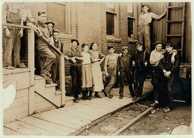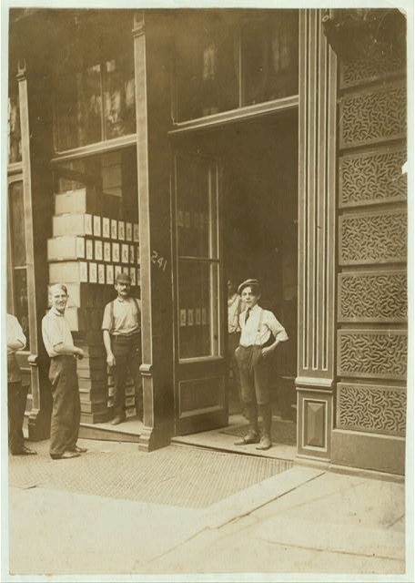 In getting many of his pictures, Lewis Hine had to do something that resembled detective work. Business owners and supervisors were suspicious of a man carrying photographic equipment and a notepad into their workplaces, so he assumed various personas to gain entrance. A note about the collection at the Library of Congress Web site mentions Bible salesman, postcard salesman, and industrial photographer making a record of factory machinery. When this sort of thing failed to get him inside, Hine waited outside the workplace and photographed children as they entered and exited.