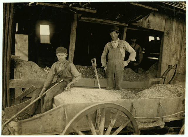 Figure 12: A boy (may be over 14) at heavy work, shoveling ore at Daisy Bell Mine, Aurora, Missouri, October, 1910. Source: Library of Congress, Prints & Photographs Division, National Child Labor Committee Collection [reproduction number LCDIGnclc01089].