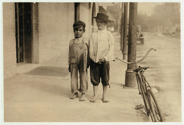 Figure 16: Sonny and Pete, newsboys. One is six years old. They began work at 6:00 a.m., San Antonio, Texas, October, 1913. Source: Library of Congress, Prints & Photographs Division, National Child Labor Committee Collection [reproduction number LCDIGnclc03877].