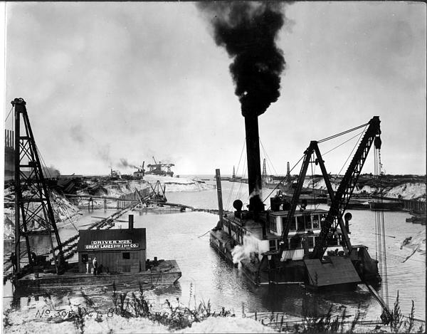 Figure 4: Slip and harbor, under construction looking north, October, 1907. Source: Calumet Regional Archives, Indiana University Northwest, Gary, Indiana [ID number, CRA42102004].
