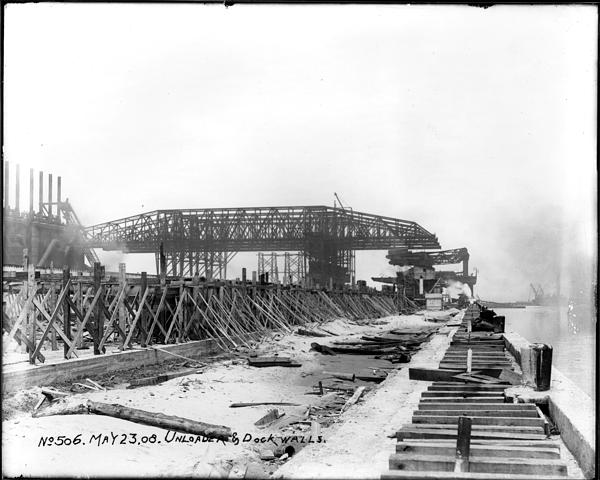 Figure 5: Unloaders and dock walls, May, 1908. Source: Calumet Regional Archives, Indiana University Northwest, Gary, Indiana [ID number, CRA42102109].