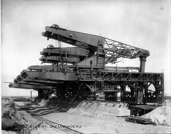 Figure 6: Ore unloaders, November, 1907. Source: Calumet Regional Archives, Indiana University Northwest, Gary, Indiana [ID number, CRA42102031].