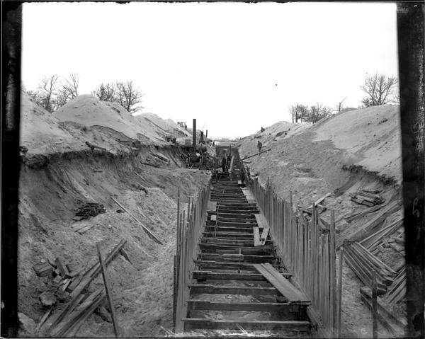 Figure 8: 96" sewer looking north (excavation), town, December, 1906. Source: Calumet Regional Archives, Indiana University Northwest, Gary, Indiana [ID number, CRA42100077].