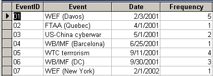 In early February 2001, the World Economic Forum (WEF) met in Davos, Switzerland. As the relevant San Jose Mercury News article noted, "The Internet has turned out to be a remarkable tool for nonviolent protest on a scale activists could only dream of before" (Koppel, 2001). Indeed, beyond the organizational and mobilization tasks, the Internet was used in at least two fairly novel ways. Internet users from all over the world could log into a Web site where they sent political messages to the conference participants, which messages then were automatically projected onto a hillside in a large size. The other way was a hack into the WEF online database, from which the perpetrators allegedly took credit card numbers and travel itineraries of conference participants. However, the WEF insisted that the actual motivation or affiliation of the perpetrators had not been determined.