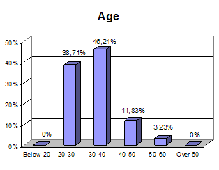 Figure 1: The demographic distribution of effective respondents.Only 28.3 percent of them had a university degree and less than 2.2 percent had any postgraduate title. As a consequence most of them have graduated from secondary schools and 17.4 percent have graduated from technical schools. The first important result was that the majority of journalists working in local newspapers have a low educational level.