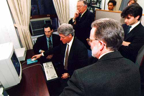 In our interview, Lytel emphasized his pride that the White House site was a governmental repository, not a political one; the White House Web presence is pointed to by the Republican Party, the U.S. House, and tens of thousands of other Web sites as a valuable information resource. Lytel recognized his place in history as the first White House webmaster, and he wanted to establish a tradition that the site would house a substantial collection of serious, more-or-less unbiased information.Unfortunately, the recent experience with the disappearance of the speech archive calls into question the wisdom of having a government agency maintain its own archive of news or historical materials. In this case, we have an Administration that is generally favorably disposed towards electronic dissemination of information: it is said that Clinton has never shied away from a podium -- and this is a sort of virtual podium. Some people credit Vice President Gore with coining the term "information superhighway."