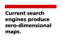 In a sense, current search engines produce zero-dimensional maps. Points in this space correspond to vectors of words and documents and documents are returned in a list ordered by their distance (relevancy distance) from that point. They collapse the multiple dimensions of cyberspace into a point and all orientation is lost.