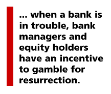 The second reason for market failures is asymmetric information between bank and a large number of free-riding depositors and the incentives of bank management and equity holders to gamble for resurrection when the bank is in trouble.
