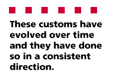 Another is that, for unconscious customs, they have been followed with remarkable (even astonishing) consistency. I have observed the evolution of literally hundreds of open-source projects, and I can still count the number of significant violations I have observed or heard about on my fingers.