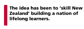 The language of skills, evident in all of the green papers discussed above but particularly prominent in the document on teacher education, mirrors trends set in earlier education policy statements. 'Upskilling' the population has been seen as a key goal for educational reform at all levels of the system. The New Zealand Curriculum Framework (Ministry of Education, 1993) - the document on which all subsequent school curricula have been based - is saturated with talk of 'skills'. Learning is understood in terms of eight groupings of 'essential skills': communication skills, numeracy skills, information skills, problem-solving skills, self-management and competitive skills, social and cooperative skills, physical skills, and work and study skills. At the tertiary level, the industry training strategy has been built on the assumption that education ought to be more closely tied to the development of skills necessary for effective employment. The idea has been to 'skill New Zealand' (Education and Training Support Agency, 1993): to build a nation of lifelong learners, committed to the concept and practice of perpetual training - which Deleuze (1992) predicted would, in time, tend to replace the 'school' as the dominant feature of educational life in Western societies - in order to stay competitive in a rapidly changing world.