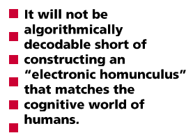 Whether that is possible at all is not without its philosophical overtones. Progress in this direction of artificial intelligence has stalled since the mid-sixties. Recent achievements in computer chess exploit hardware; the actual software incorporates no cognitive modeling. Automated search, indexing and "data mining" engines, as well as what are sometimes called "intelligent agents", rely on various forms of pattern matching and building statistical correlation tables. Neither contributes to the logicist-structuralist side of AI.