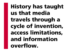 So what then has history taught us about convergence? Most certainly, it has shown that media travels through a cycle of invention, access limitations, and information overflow. If there is a convergence theory that has lasted over the history of media, it applies to the convergence of revenue models and profit motives, market tides that ebb and flow, changing and reinventing as the media matures. The problem is not within the theory itself, because in some ways, such as economic convergence, it has had tremendous success. The problem rests with the hybrid by-products of the convergence theory and those by-products are the models used by other mass media to create, develop, and disseminate information. By continuing to use the models of past media as our measuring sticks we continue to develop the new media of the Web within the standards and ideas of these past media.