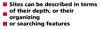 First, sites can be described in terms of their "depth." In other words, how many times must the user click on a hot link within the original site, before arriving at the server with the actual content?