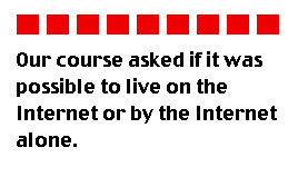 Political Issues: Offered in an election year, the course attempted to study political issues and public policy. How democratic is the Net? Does the Internet as an entity have political leanings? Does the Net enhance democracy? Is it a self-regulated pseudo-society? Will elections ever occur completely on-line? Does the Net allow politicians to understand the electorate and vice-versa? How do "Internet" bytes compare to other campaign strategies? Will the Net affect citizenship? How effectively do political activists use the Net?