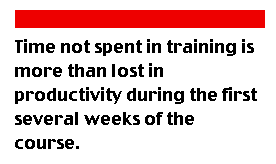 In order to accommodate those in the last group, and to supplement the "comfort level" of those in the intermediary group, the course has to be structured in such a way to permit on-line training and practice. Training must begin with e-mail and e-mail account development and operating system features, progressing to more advanced features such search engines and storing information. Time not spent in this sort of training is more than lost in productivity during the first several weeks of the course. In fact, those who attempt to "catch on" by trial and error never quite reach an optimal level of competency.