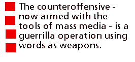The counteroffensive - now armed with the tools of mass media - is a guerrilla operation using words as weapons, as described by Dery: