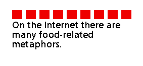 First, we think about cookies as a kind of food. On the Internet there are also other food-related metaphors such as Java script which is associated to coffee (and drinking coffee late into the night or meeting friends for a coffee at a café or at someone's house). Similarly, the term Applets, small Java applications, seems to mean "small apples", and is now included by a process of folk etymology as an example of a food metaphor [ 11]. Apple Computer uses Macintosh to refer to a kind of computer, but "McIntosh" is also a variety of apple.