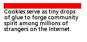 All of us involved in the Internet in some way have come across the idea of Web cookies, and wondered about where this term comes from and what significance it holds. First, they remind us of sweet biscuits and childhood. Now, in this electronic context, they seem dangerous, invading and annoying [ 1]. These are the most obvious remarks, but surprises came up when we were working on other research, namely about politeness phenomena in Internet Relay Chat conversations [ 2]. On two separate occasions (and it wouldn't be surprising if this happens more often) cookies were discursive objects that were distributed around to the whole group as tokens of kindness and unity. Giving in chat seemed like a child's game of make believe in which he invites his friends to partake in a little tea party (with their little fingers raised as they "sip" from delicate cups). The double meaning and complexity of the term associated with the gesture of giving became more and more apparent as we looked into further associations on the Internet and in real life. This lead us to a deeper investigation on the use and meaning of cookies, whether on the Internet or in the "real life" social world that shapes us and our online participation.