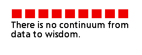 The 'cybernetic' era of the second half of the twentieth century advanced some sophisticated, but fundamentally mechanistic arguments that sought to reduce all of these ideas to cascading tiers of control loops. It failed. There is no continuum from data to wisdom; they need to be regarded as a set of related, but distinct, domains.