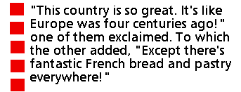 I planned to make a shirt with the first cloth I bought, but after getting a few meters of ikat cotton, I began getting other pieces just because they were so amazing. Silk in deep reds and gold ikat figures (men, elephants, temples); geometric patterns embroidered into cushions and wall hangings by Hmong artists, some designs on the skirts looked like they came from Oaxaca (Mitla) and old baby blankets from the 19th century plus the usual Beer Lao t-shirts. Before visiting Laos I had asked an area expert what I should do during my short visit. "Do nothing," he advised. "Sit by the Maekong and drink beer with the other Laotians. Relax." I sat by the central fountain and watched people while guzzling the half pitcher of beer (60 cents U.S.!). A young bicyclist with strawberry blond hair waited anxiously for her friend, and they bicycled away together. The pace here is so slow compared to other Asian capitals, and it is recommended for that reason alone. Just off of the circle was the Auberge Provencal where I had a delicious but comparatively expensive meal for only $8.50.