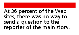 At 36 percent of the Web sites, there was no way to send a question to the reporter of the main story. Of the 64 sites with reporters' e-mail addresses: