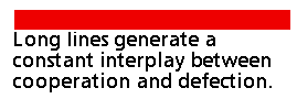 If a two-player prisoner's dilemma game is played just one turn, the most logical choice is for both to defect. That way neither risks the disparity where one gains a lot, the other nothing. Yet, when the game is played over and over, for numerous turns — a "reiterated prisoner's dilemma game" — both players increase their points if they both choose to cooperate some of the time. But how to assure that? How to signal that, in the absence of direct communication? The key experiments — related in Axelrod's The Evolution of Cooperation and his sequel, The Complexity of Cooperation — show that the most advisable strategy for either or both players to follow is "tit for tat": specifically, to cooperate on the first move, and then on each subsequent move to do what the other player did on the prior move. Thus if he defects on a turn, you defect on the next, and so forth. The "shadow of the future" should entice a player to cooperate now in order to enhance the likelihood of reciprocal cooperation in the future.