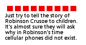 The very first step in the history of communication technology quite literally needed the use of one's feet. The Greek marathon, or the physical transmission of a message by means of a relay race, was the first innovation in the process of breaking down space/time barriers in communication. The simple principle of getting a message across as quickly as possible has never changed and resulted today in a situation where speed cannot possibly be increased and where no place on earth is free from communication. The present state of technology allows us to live on an uninhabited island say somewhere in the Pacific and receive whatever television channel we desire by satellite. It allows us to contact whomever we feel like by cellular phone or personal computer and even to follow daily business in our office, if, of course, we would care to.In these circumstances, just try telling the story of Robert Louis Stevenson's Robinson Crusoe to children. It's almost sure they will ask why in Robinson's time cellular phones did not exist. These questions reveal a loss of magic and enchantment, one result based on the presence of powerful communication technologies globally.