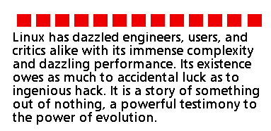 Amidst such glitz and glamour of the sudden media attention, the obscure beginning of Linux is all the more unreal. How, in fact, did a project that started out as nothing more than a simple hobby end up with an operating system superior to anything the world's computer industry has produced? We now turn to a closer look at the dynamics and the structure of its improbable development.