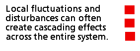 The implications of the properties of complexity - adaptive interactions based on localized information at multiple levels of organization - are critical and often surprising. First, from the centrality of local interactions based on inductive inferences, it follows that local fluctuations and disturbances can often create cascading effects across the entire system. This idea is well captured in the famous butterfly effect: a butterfly flapping its wings in Florida causes a storm in Hawaii [ 44]. According to John Casti, the nonlinear amplification of local instabilities is a defining fingerprint of a complex system [45].